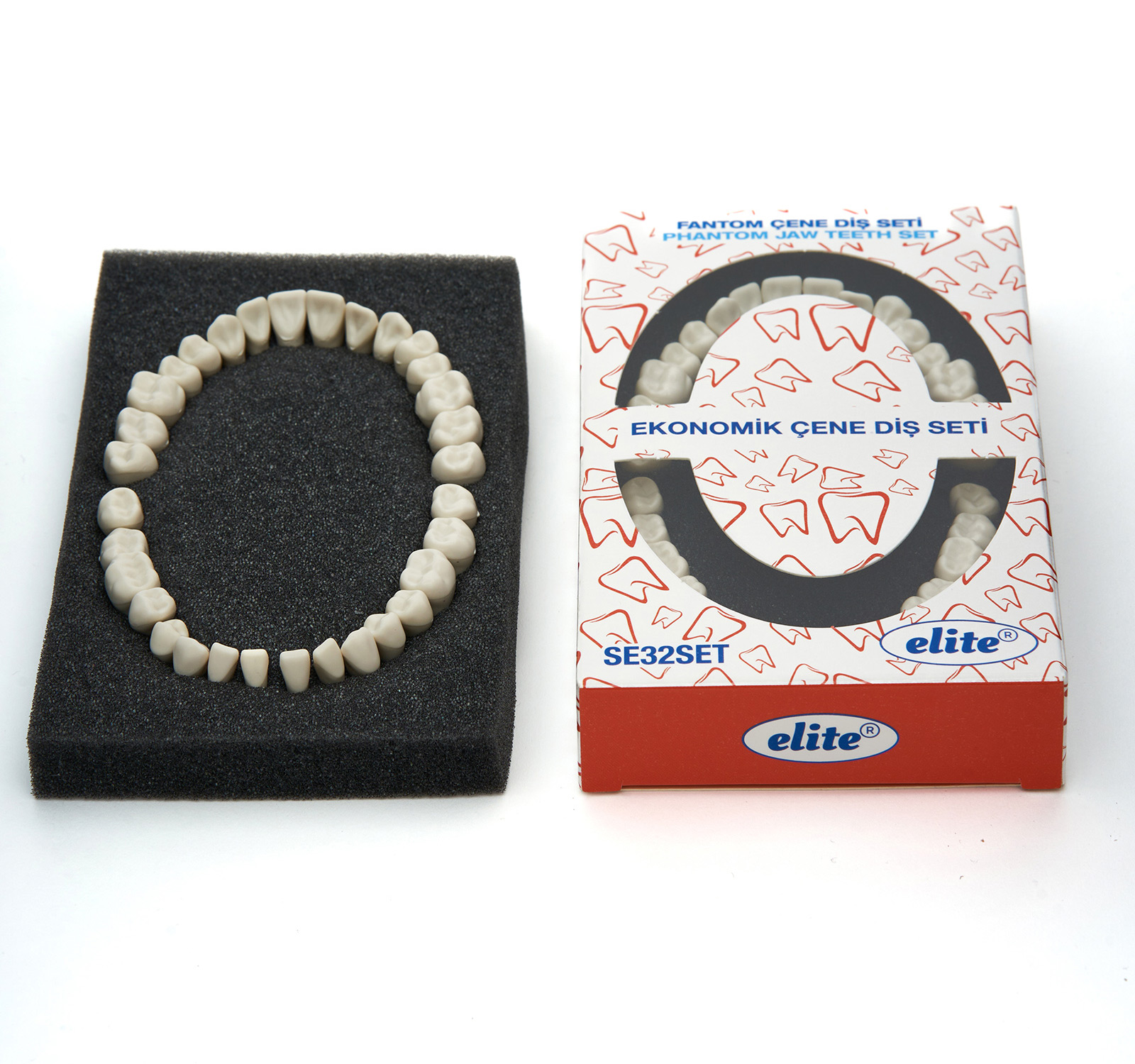 SE32JAW fantom çene ile uyumlu köpek ve azı dişlerden oluşan set halinde 32 dişten oluşmaktadır.
