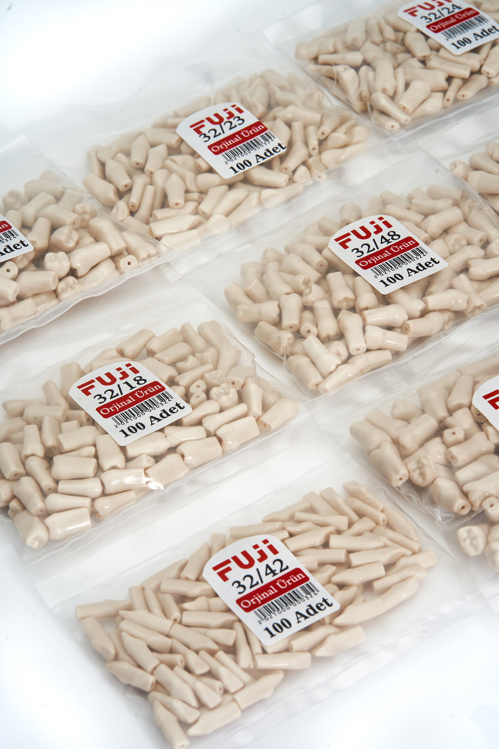 Dişler F32JAW fantom çene ile uyumludur. Dişlerin köklerine numara yazılmıştır. Vida ile çeneye sabitlenebilir.