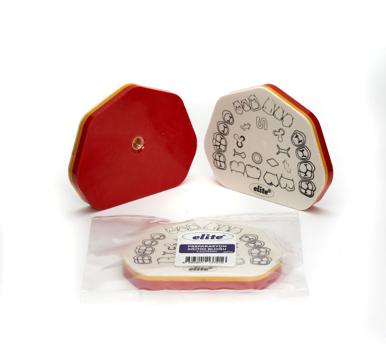 Mine-Dentin-Pulpa preparasyon eğitimi ve egzersizleri için geliştirilmiş 3 farklı katmandan oluşan ve fantom kafaya sabitlenebilir eğitim bloğudur. Ayrıca yanında şeffaf blokta takım halinde verilmektedir. Ürünleri ister takım halinde isterseniz tek olarak satınalabilirsiniz.