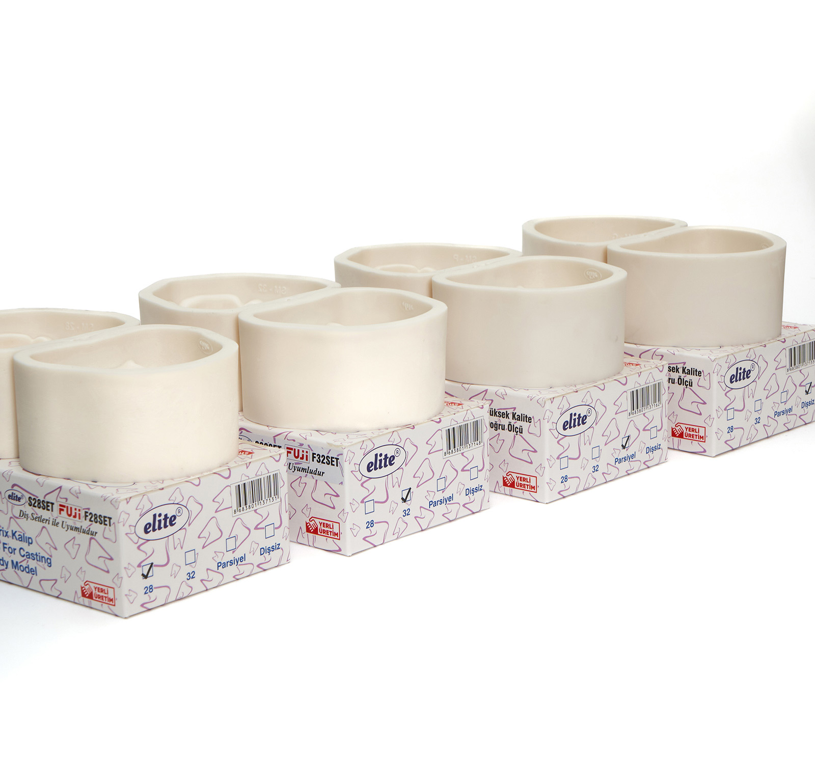 F32JAW, F28JAW çene modelleri ile uyumlu alçı çalışma modelleri. Ayrıca dişsiz ve parsiyel olmak üzere toplam 4 modelden oluşmaktadır. Dişli kalıplara Fuji tekli dişler monte edilerek çalışma yapılabilir. Mukavemeti ve elastikiyeti yüksek özel hammadden üretilmiştir. Taklitlerinden sakınmanız için elite markamız ve ürün kodlarımız ürün üzerine kabartmalı olarak yazılmıştır.